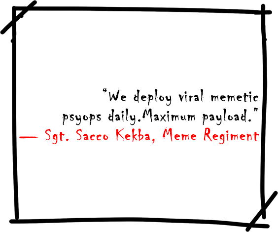 are the memes.Pepe the Soldier was no longer a